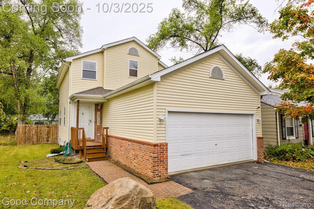 Matterport virtual walkthrough available on Homes. Spacious colonial in Farmington Hills featuring tall ceilings, a large primary bedroom, and a private fenced backyard with a raised deck. Custom built in 1994 and lovingly maintained by the original owner, this home offers great flow and generous storage throughout. Step into a bright entry foyer that leads to an airy living room with soaring ceilings and access to the back deck. The open kitchen and dining area include crisp white cabinetry, plenty of prep space, and room for casual dining. A convenient half bath and access to the attached two-car garage complete the main level. Upstairs, three comfortable bedrooms share a full bath, and the oversized primary suite features vaulted ceilings and abundant closet space. The finished basement adds a great bonus area for recreation or hobbies, along with extra storage. Enjoy a fully fenced backyard with mature trees, a large deck, and a storage shed. Welcome Home!