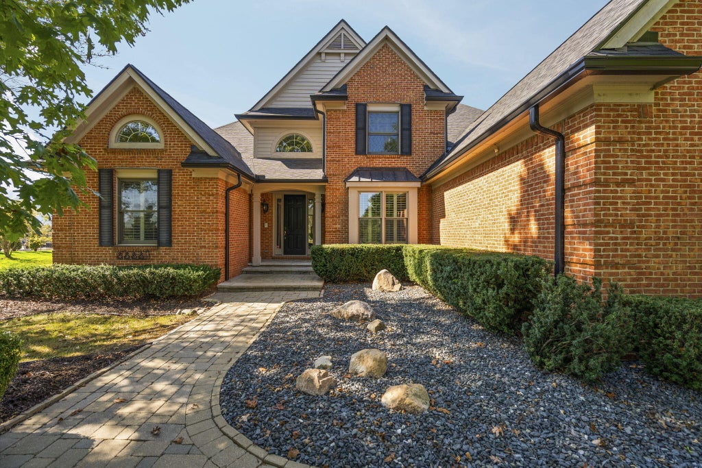 Welcome to this extraordinary executive estate, a rare blend of timeless craftsmanship, modern updates, and serene natural beauty set on 3 lush acres with sweeping lake views. From the moment you step into the soaring great room, you're greeted by a dramatic wall of windows that flood the space with natural light and frame breathtaking views of the water, while a marble fireplace adds warmth and elegance. The heart of the home is the gourmet kitchen, designed for both chefs and entertainers, featuring granite countertops, stainless steel Bosch appliances, a brand-new Sub-Zero refrigerator (2024), stacked stone fireplace, beverage bar, cozy breakfast nook, and dual pantries--all flowing effortlessly to the expansive stone patio complete with a built-in Lion grill and gas fire table for unforgettable evenings outdoors. The main-level primary suite is a private retreat with walnut floors, tray ceiling, dual walk-in closets, and spa-worthy bath with jetted tub,glass shower and dual vanities plus direct access to its own secluded stone patio. Upstairs offers a vaulted secondary suite with spa bath, a princess suite, and two additional bedrooms with a Jack & Jill bath, while a vaulted office with French doors provides a refined space for work or study. The finished lower level is an entertainer's dream, designed to above-grade standards with a full marble-floored kitchen and bar, spacious living room, two offices, a full bath, and brand-new carpet (2025). Peace of mind comes with a long list of recent upgrades, including a new roof and gutters (2024), new A/C units (2022 & 2023), radon mitigation system (2021), refinished hardwood floors (2022), central vacuum (2021), septic tanks lids installed & tanks pumped (2025), ChargePoint EV charger (2023), and new water softener (2023). Outdoors, the professionally landscaped grounds feature open lawns, mature trees, and perennial gardens that create a perfect backdrop for both entertaining and quiet retreat. With 5 bedrooms, 5.1 baths, 4,304 square feet above grade plus 1,583