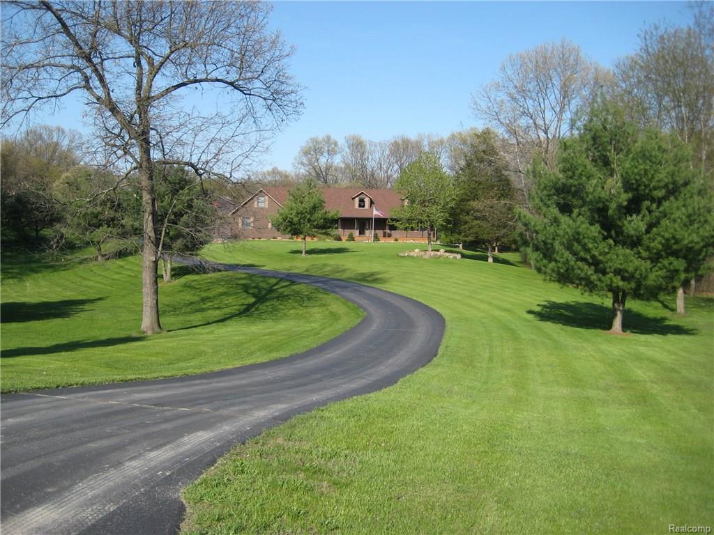 Frame The View! Fabulous hilltop setting for the ultimate in privacy and seclusion on nearly 4 acres, cul-de-sac, car enthusiasts dream come true w/40 X 30 heated pole barn plus attached 3 car garage, room for 7 cars, over $100k in recent updates, 4,000 sq. ft. including finished lower level walkout, 2 story foyer, formal living room w/fireplace, dining room, library, new powder room, kitchen w/hardwood floor, snack bar, oversized pantry, family room w/hardwood floor, first floor master suite w/his/hers walk-in closets, private patio, glamour bath w/his/hers sinks, separate tub/shower, first floor laundry, 25 X 6 loft area w/cedar closet, finished lower level w/game room, full kitchen, perfect for in-law suite, exercise room/bedroom, stamped concrete covered patio, shed, pond setting, recent updates include landscaping, porch, walkway, deck, roof, furnace, AC, hot water heater, whole house generator, driveway, hardwood flooring, interior and exterior paint. One Of A Kind Beauty!